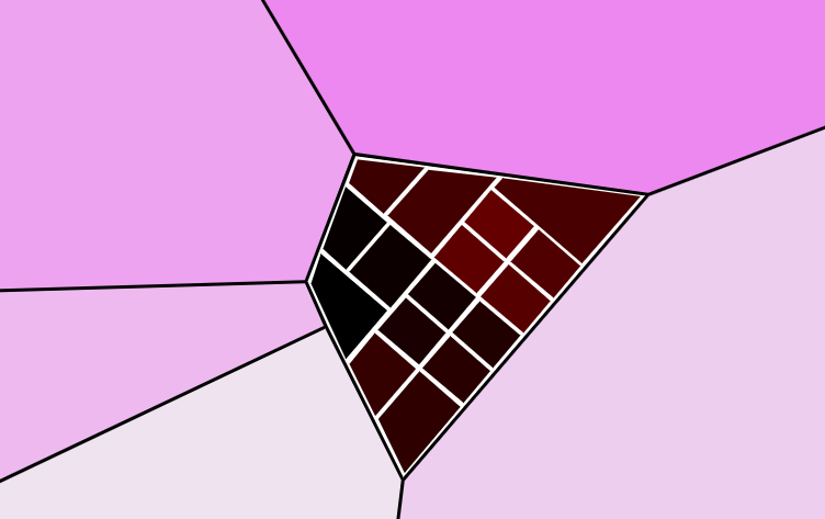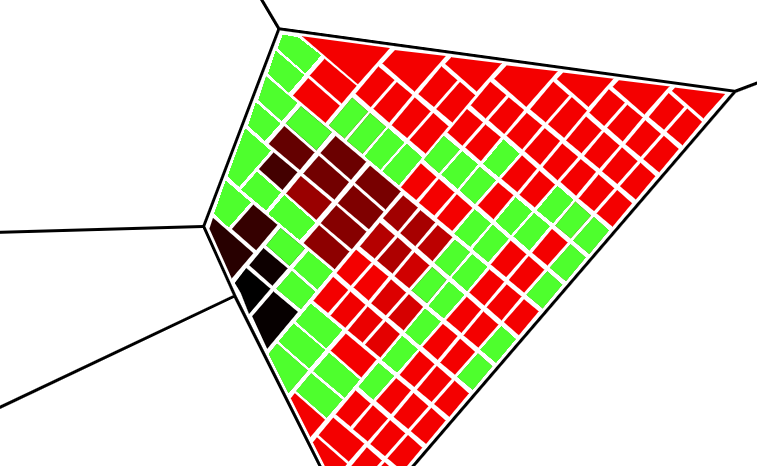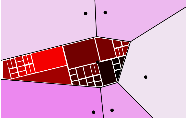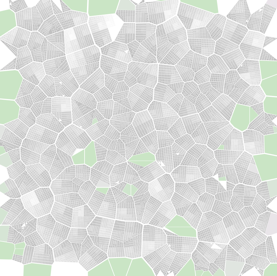 Applied on a larger scale, it spits out a few thousand building plots in a fairly organic layout.