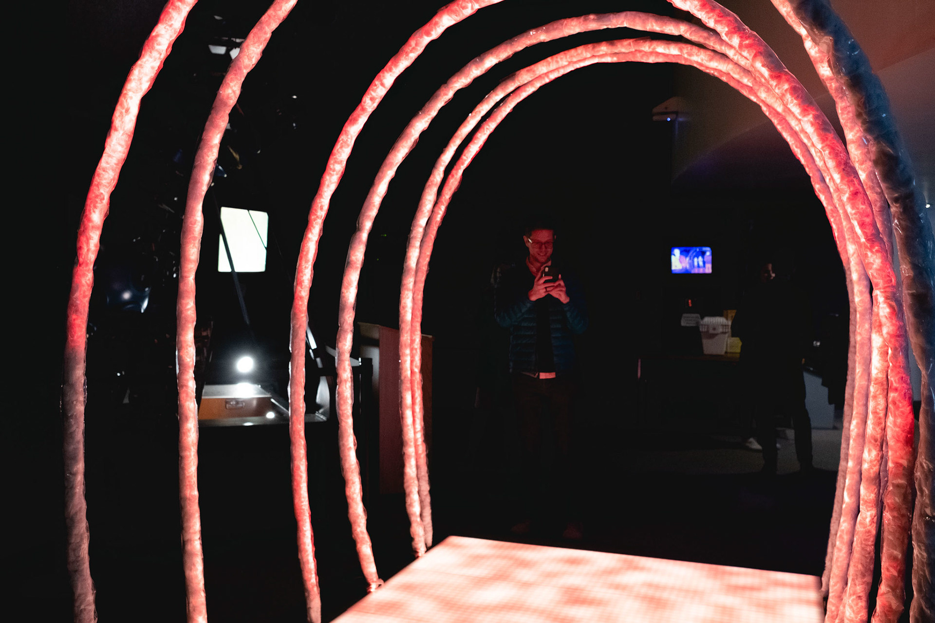 The basis for the summer project was a prototype called the "Solar Arcade". At the time it consisted of a red felt walkway (the surface of the sun) under six 8-foot LED loops. There was a pressure pad where the loops could be activated to demonstrate coronal mass ejections. Taking that as a starting point, we decided to emphasize the Sun's shifting surface to illustrate how these dynamic motions create and influence coronal loops.