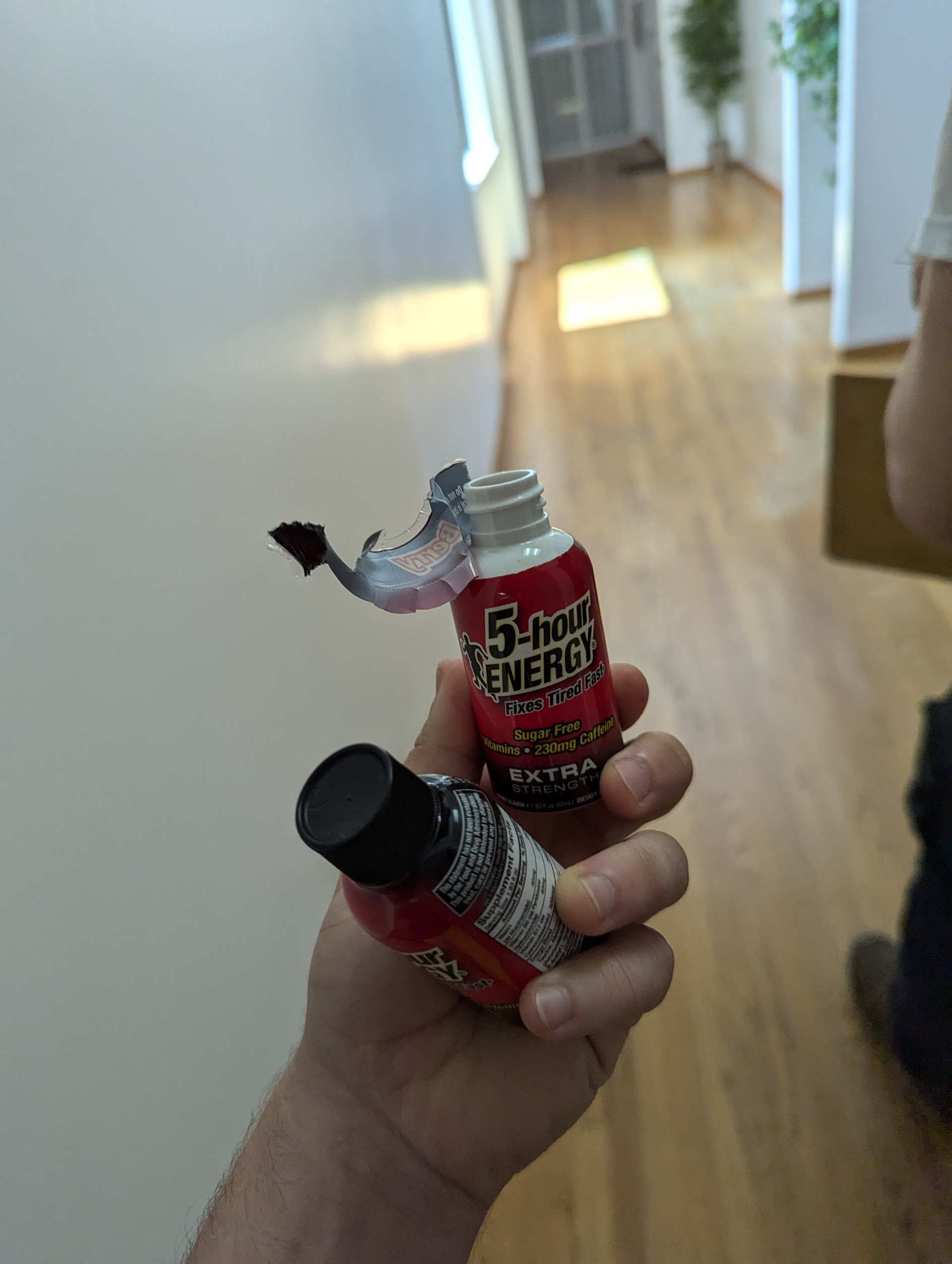 The rope was some red fabric stuffed with polyfill, with two spraypainted 5-hr energy bottles on either end. Then, the caps had brass hooks screwed into them.